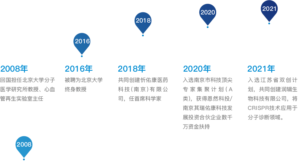 迄今发表论文60余篇,先后承担国家自然科学基金、973、国家重点研发计划等12项国家级课题,与阿斯利康、拜尔等大型国际药企合作项目,以及南京市和江北新区科技创新基金项目。先后被评为国家外国专家局教授外籍专家、北京大学天然药物及仿生药物国家重点实验室课题组长、科技部“发育 编程及其代谢调节专项”总体专家组成员,荣获美国国立健康研究所K01青年学者奖、哈佛大学Milton奖、北京大学树仁奖、Bayer医药研究奖、南京市科技顶尖计划和江苏省双创计划等奖项。